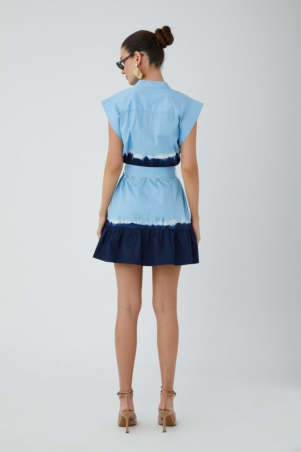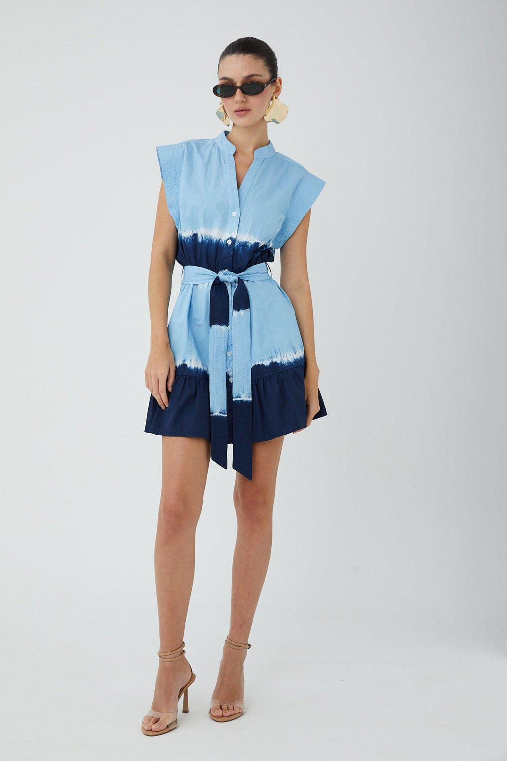 The popular Everly dress is once again available, now in a stunning blue dip dye perfect for summer. Each garment is meticulously hand-dyed, ensuring a one-of-a-kind look. Elevate your style by swapping your casual daytime footwear for a pair of chic heels.